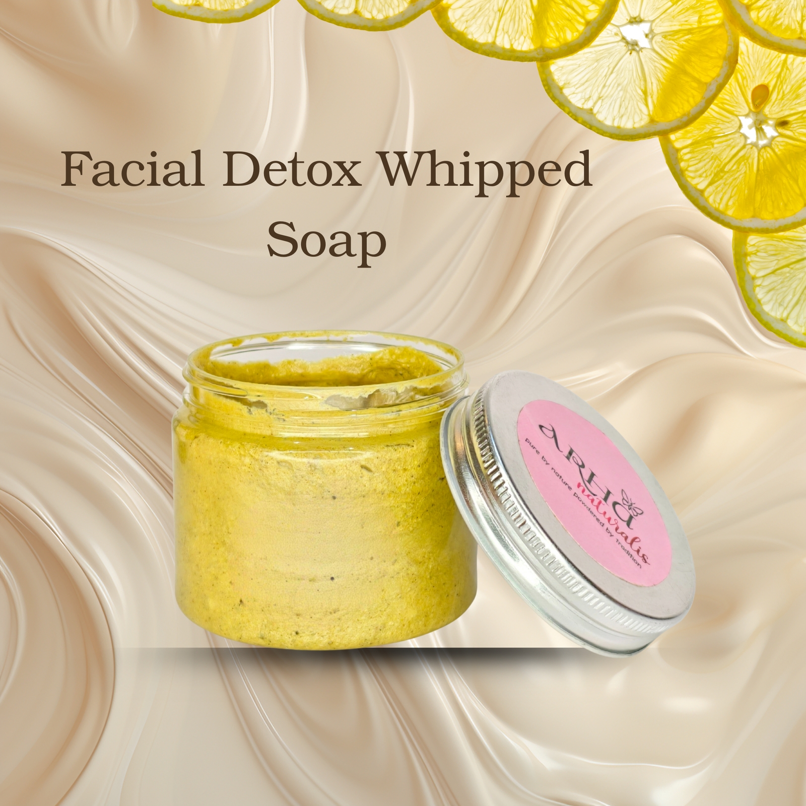 ARHA NATURALIS Facial Detox Whipped Soap is a powerful yet gentle cleanser formulated with clay, activated charcoal, neem, and botanical extracts. Specially crafted for congested and polluted skin, it helps draw out impurities, unclog pores, and protect against environmental stress.