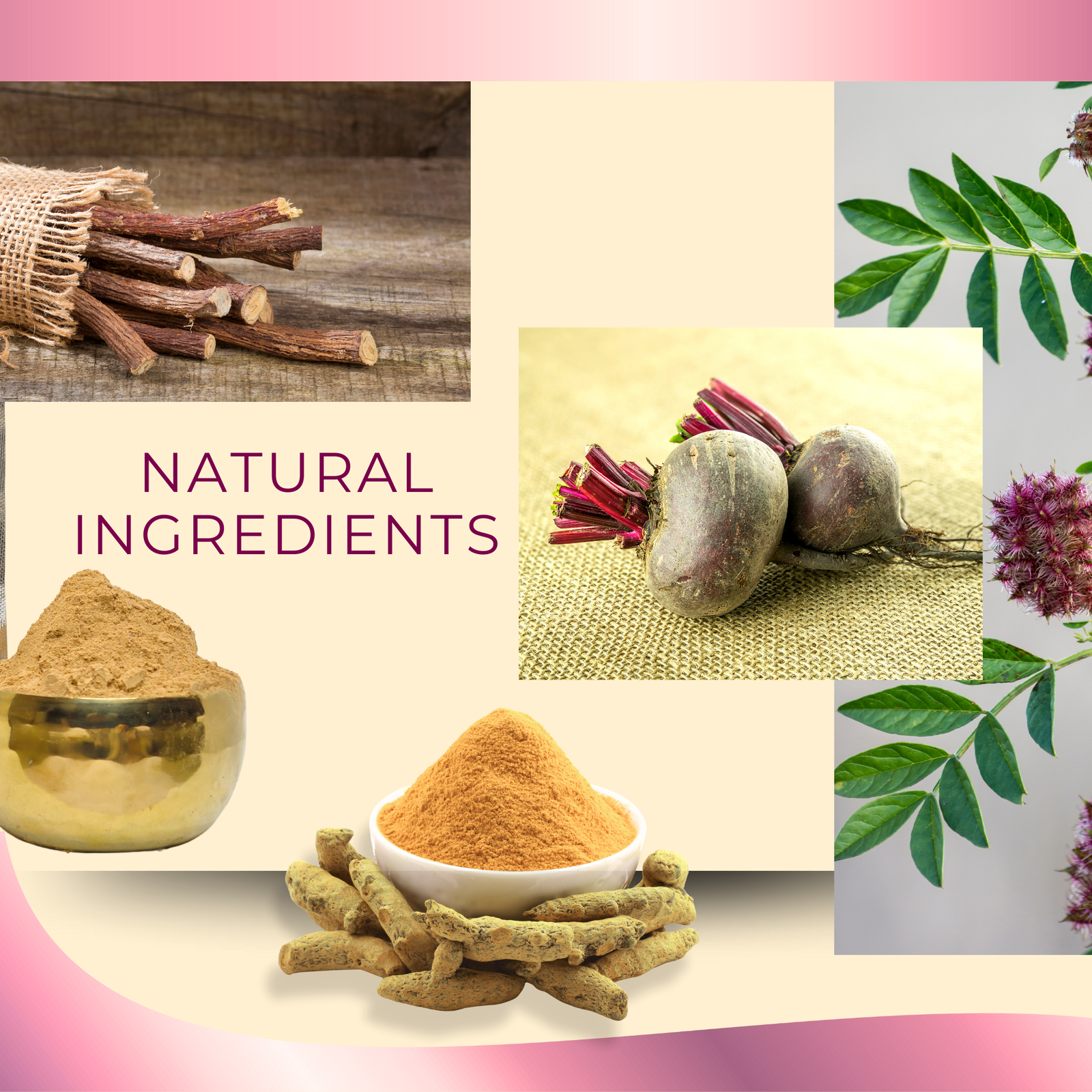Licorice, Hibiscus, Amla, Shikakai, Lemon Peel, Manjistha, Bhringraj, Curry Leaves, Green Gram, Bengal Gram, Aloe Vera & more – each herb chosen for holistic skin health.