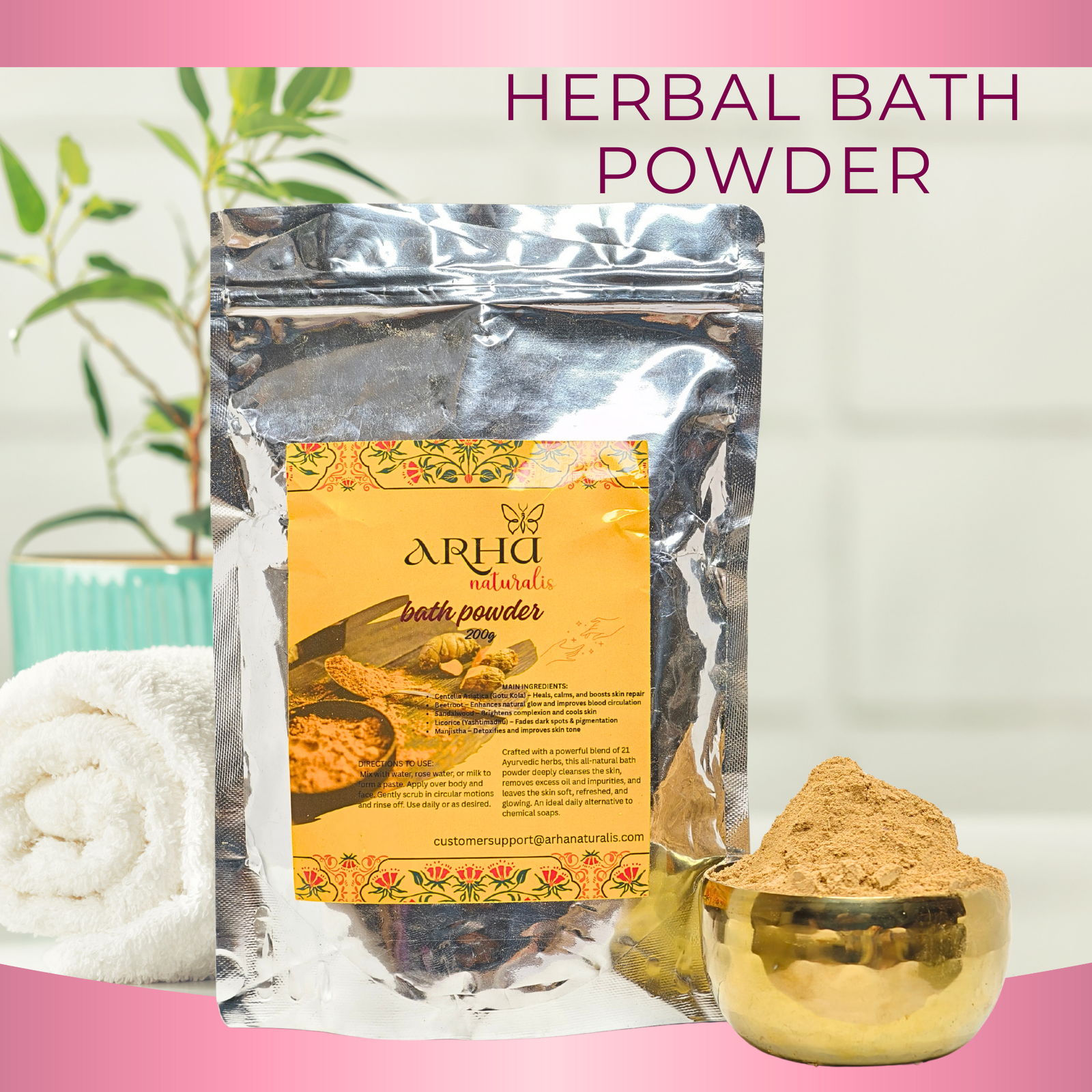 🌿 Herbal bathing powder with 21 Ayurvedic herbs – gently cleanses, nourishes, and revitalizes skin for a natural glow.